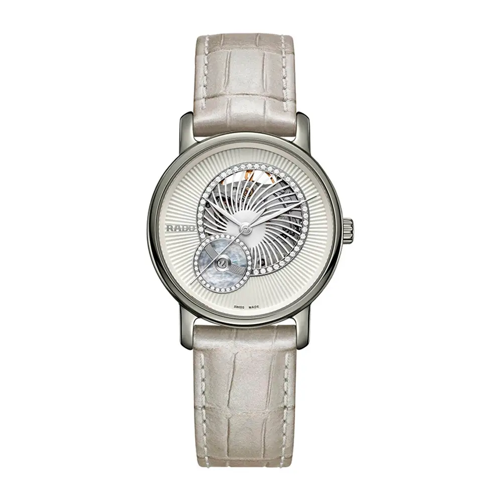 Paired with a leather strap and classic pin buckle, this timepiece completes the look with timeless sophistication. The Rado DiaMaster Automatic Open Heart Diamonds R14056935 is a true symbol of Swiss craftsmanship, subtle luxury, and horological artistry, made for women who value both elegance and excellence.