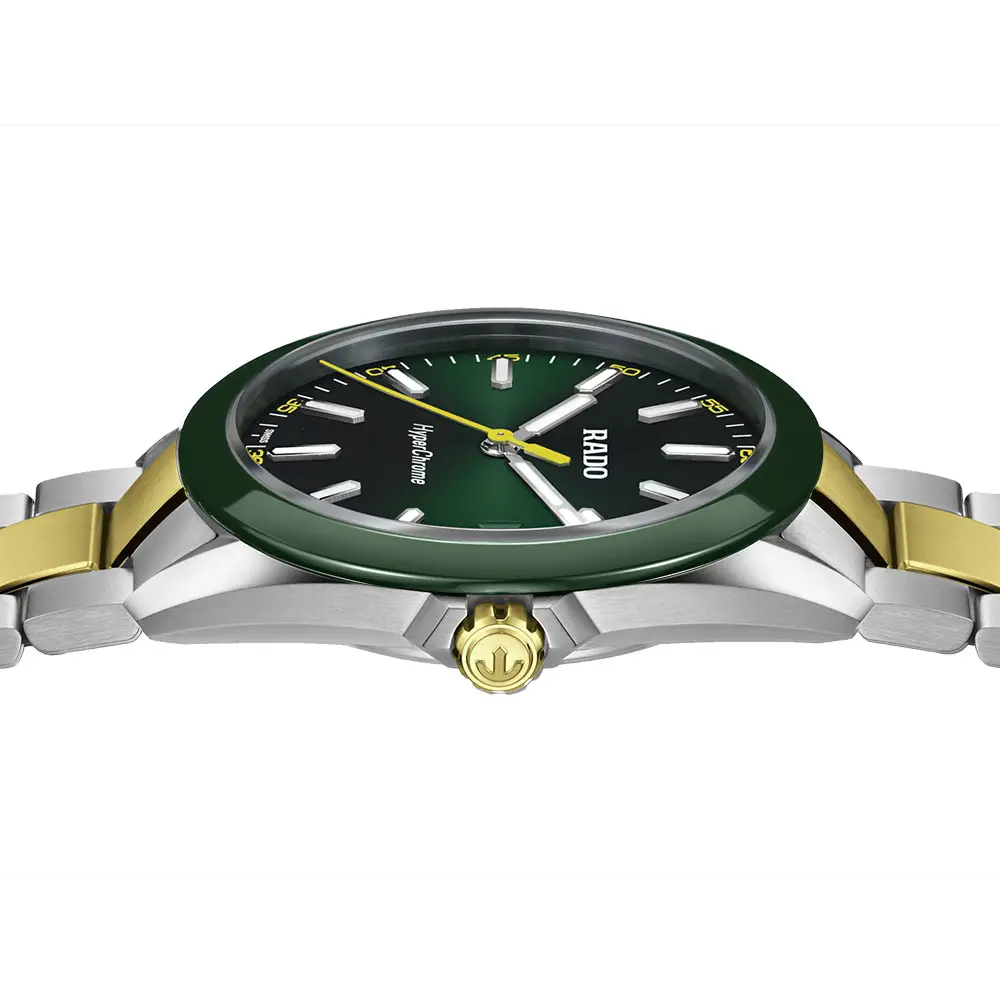 At its heart beats the quartz Rado calibre R292 with PreciDrive and HeavyDrive technology, delivering remarkable accuracy of ±10 seconds per year. The watch is water-resistant to 150 m and is fitted with a two-tone stainless steel bracelet with PVD coating, secured with a triple folding clasp with quick-adjust system. The HyperChrome is the ideal choice for those seeking a stylish and durable timepiece for both everyday wear and active lifestyles.