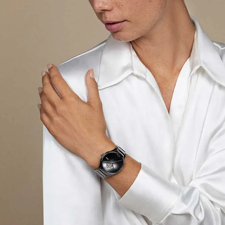 The models in this collection are made almost exclusively from lightweight, hypoallergenic and extremely durable high-tech ceramic, ensuring exceptional wearing comfort and longevity. There are variants with automatic or quartz movements, often with features such as open dials, skeletonisation or diamond details.