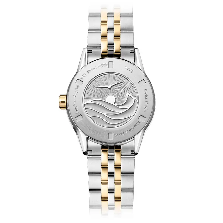 The Raymond Weil Freelancer Diver 2775-SP3-50051 is a luxurious and versatile watch that perfectly combines elegance and functionality. This model captivates with its gradient blue dial, transitioning from light to dark blue, and a two-tone bracelet made of stainless steel and yellow gold PVD. It is equipped with the automatic Calibre RW4200 movement, which provides a power reserve of up to 38 hours.