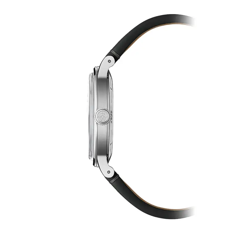 The Millesime watch is powered by a mechanical self-winding movement (RW4251) with a 38-hour power reserve. At the 6 o'clock position, there is a small seconds hand, adding a touch of sophistication to the watch. The bezel has a vertically satin-brushed surface that beautifully contrasts with the polished edge, showcasing a high level of craftsmanship.