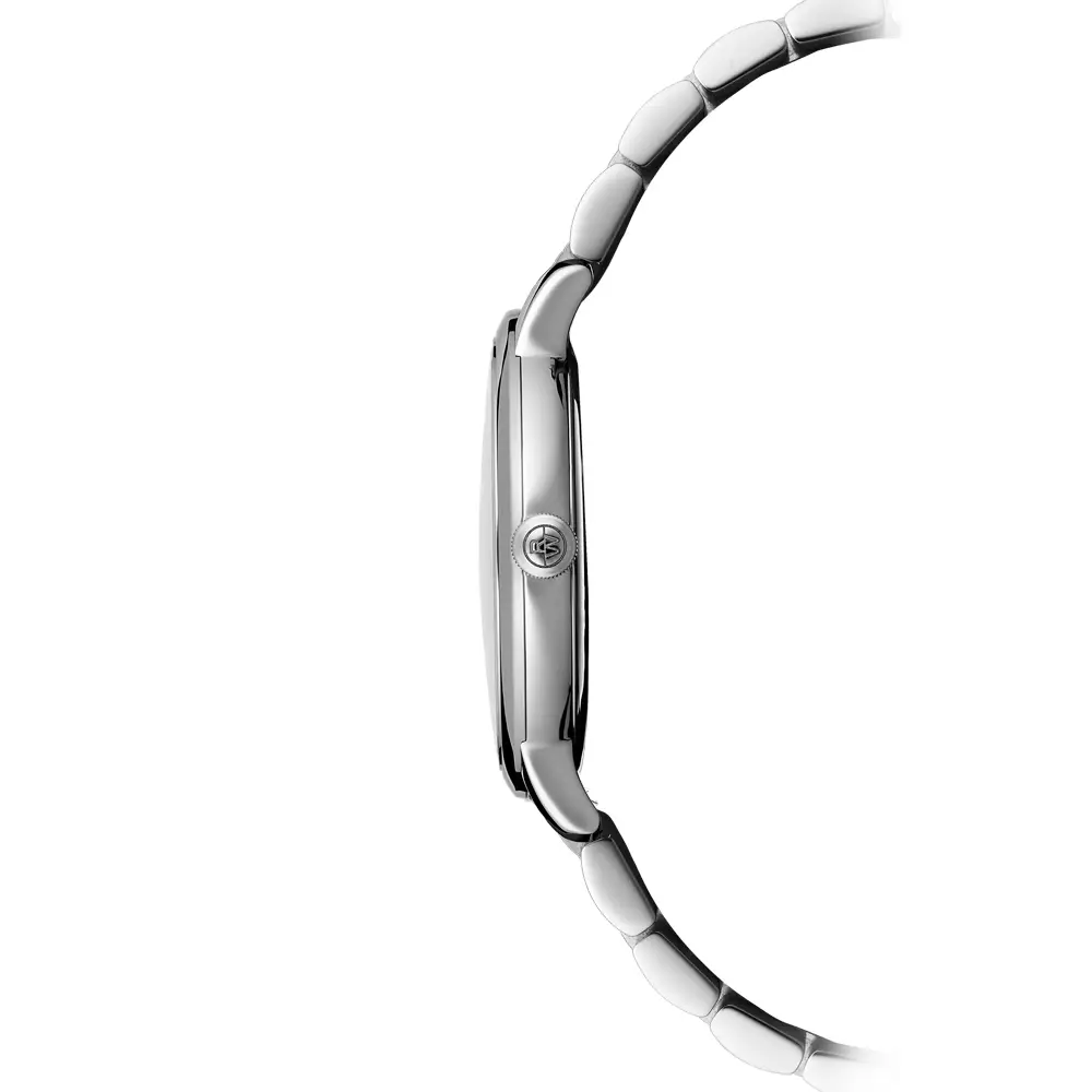 The models in this range are fitted with Swiss quartz movements that ensure high precision and reliability without the need for daily winding. Typical features are the thin case, the minimalist dial with Roman numerals or indices, and often mother-of-pearl details or diamond accents on the ladies' models.
