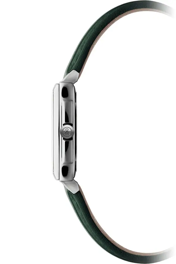 A green leather strap with a classic pin buckle perfectly matches the overall color scheme of the watch and provides comfortable wear. The model is also water-resistant to 5 ATM / 50 meters, making it suitable for everyday water contact such as handwashing or rain.
