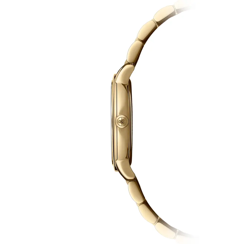 The models in this range are fitted with Swiss quartz movements that ensure high precision and reliability without the need for daily winding. Typical features are the thin case, the minimalist dial with Roman numerals or indices, and often mother-of-pearl details or diamond accents on the ladies' models.