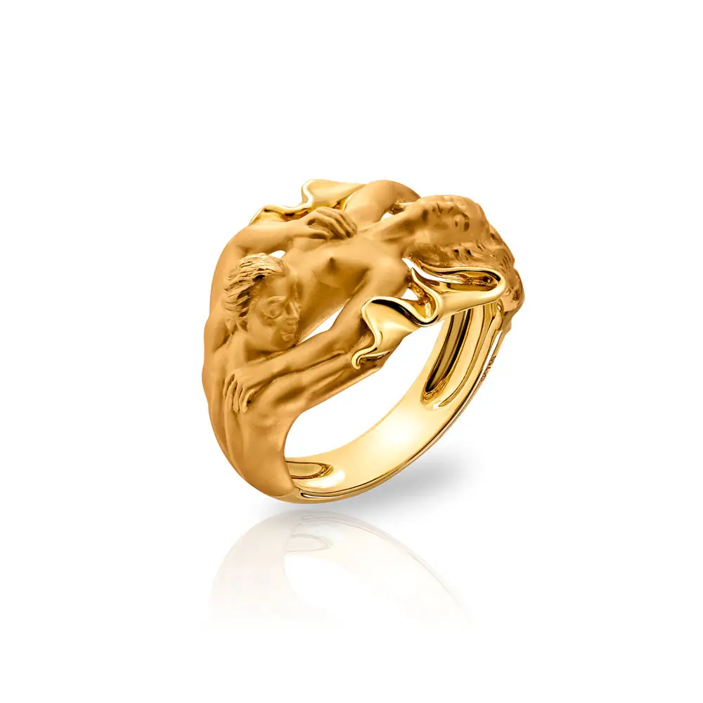 Carrera y Carrera Romance Pareja is a ring that tells the silent story of two souls united in love. Crafted in 18k yellow gold, it uses the contrast between a shiny and matte finish to bring out the depth of emotion and expressive detail.