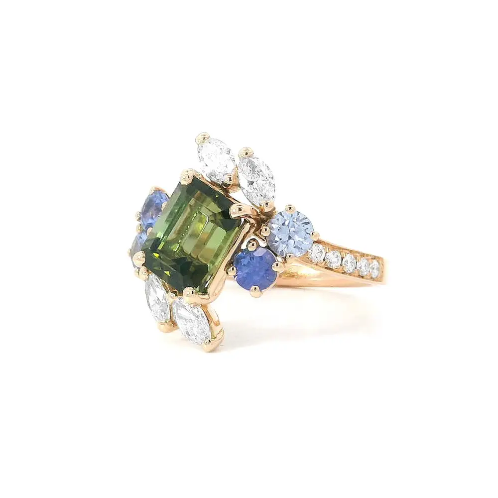 Ring Elegance of Nature - Tourmaline in Combination with Sapphires and Diamonds