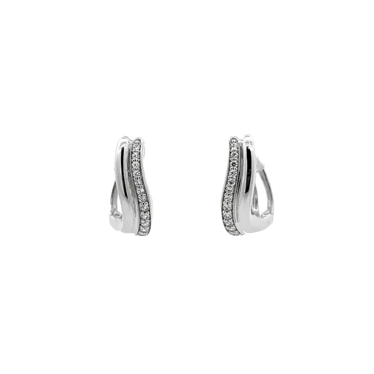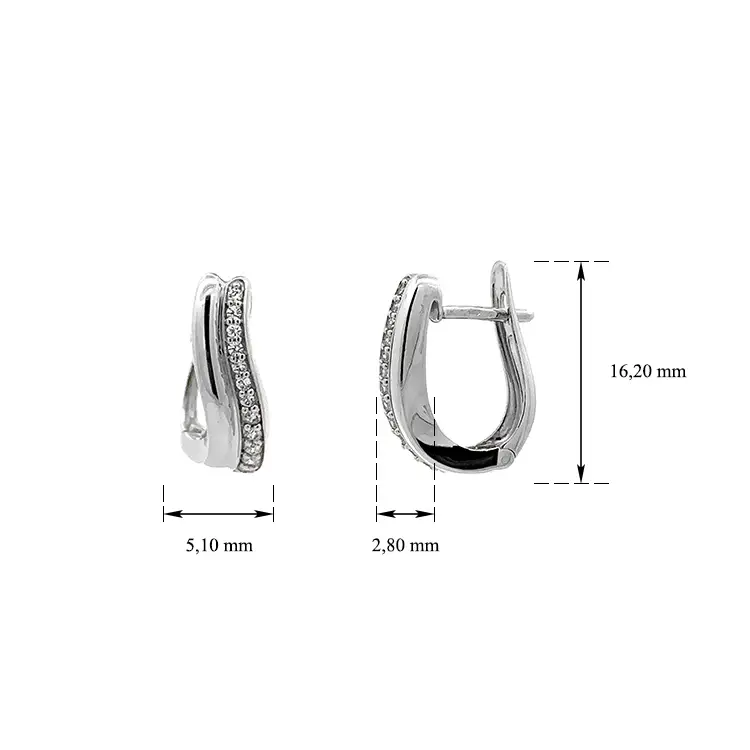 Round Earrings in White Gold Decorated with Zircons