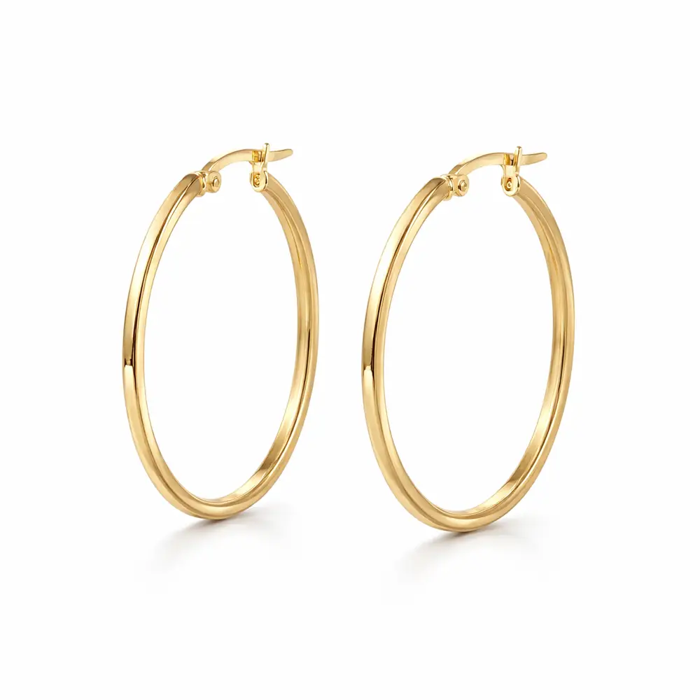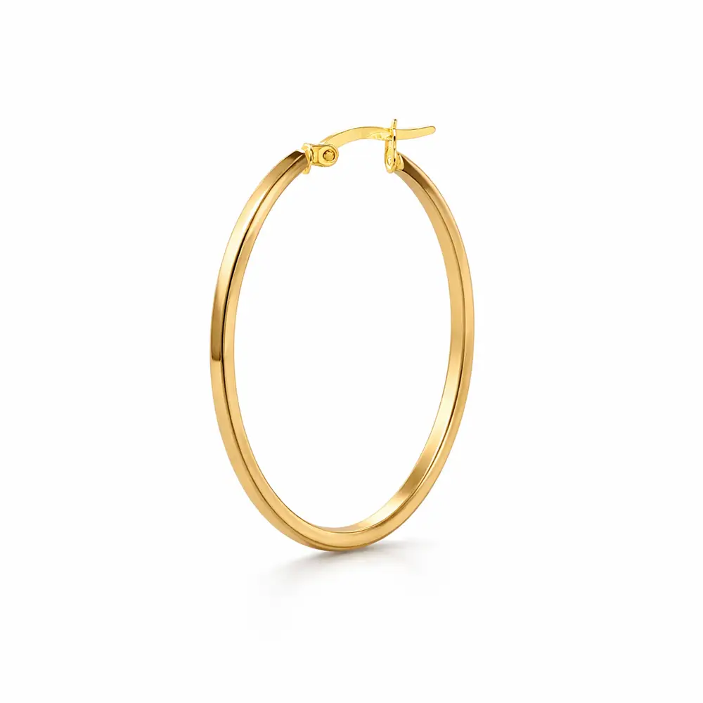 These hoop earrings in yellow gold stand out with a clean, smooth design that emphasizes timeless elegance and a minimalist aesthetic. The finely polished surface reflects light beautifully and highlights the natural warm tone of gold, giving the jewelry a refined and versatile look.