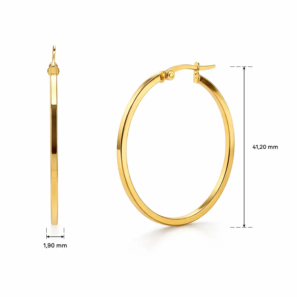 The classic hoop shape combined with a secure fastening ensures comfortable and reliable wear throughout the day. With a diameter of approximately 41.20 mm and a slim profile width of about 1.90 mm, the earrings feel light and airy, making them ideal for everyday wear as well as a subtle accent for more formal outfits.