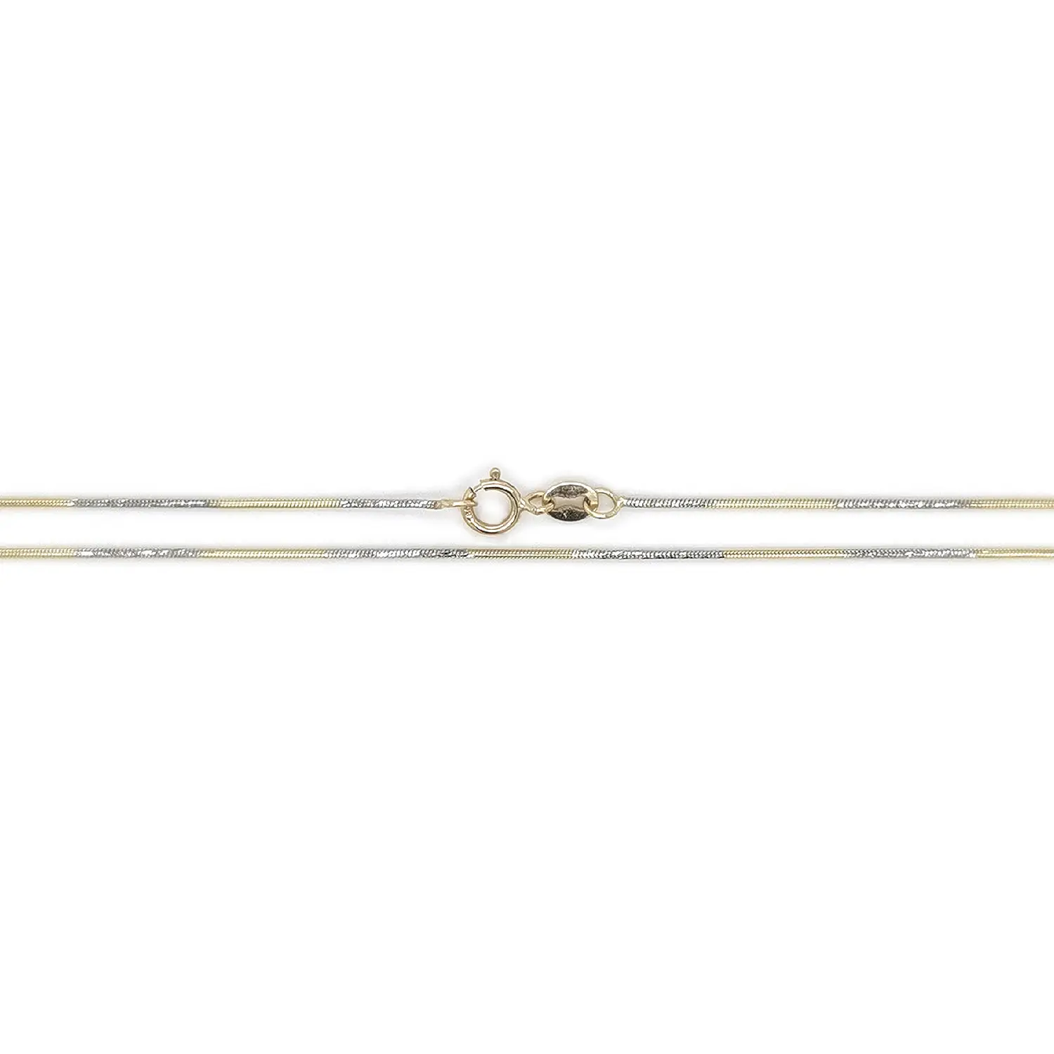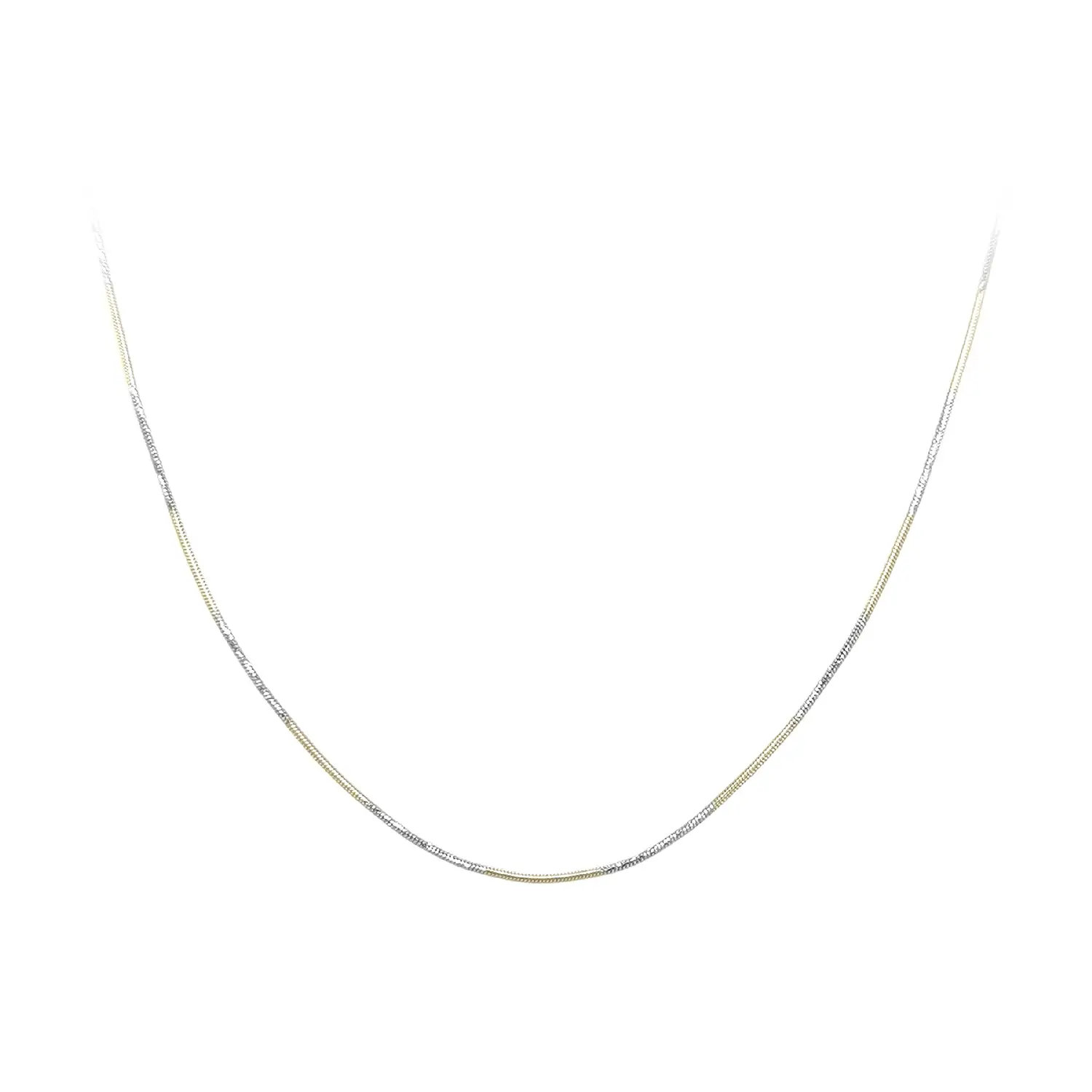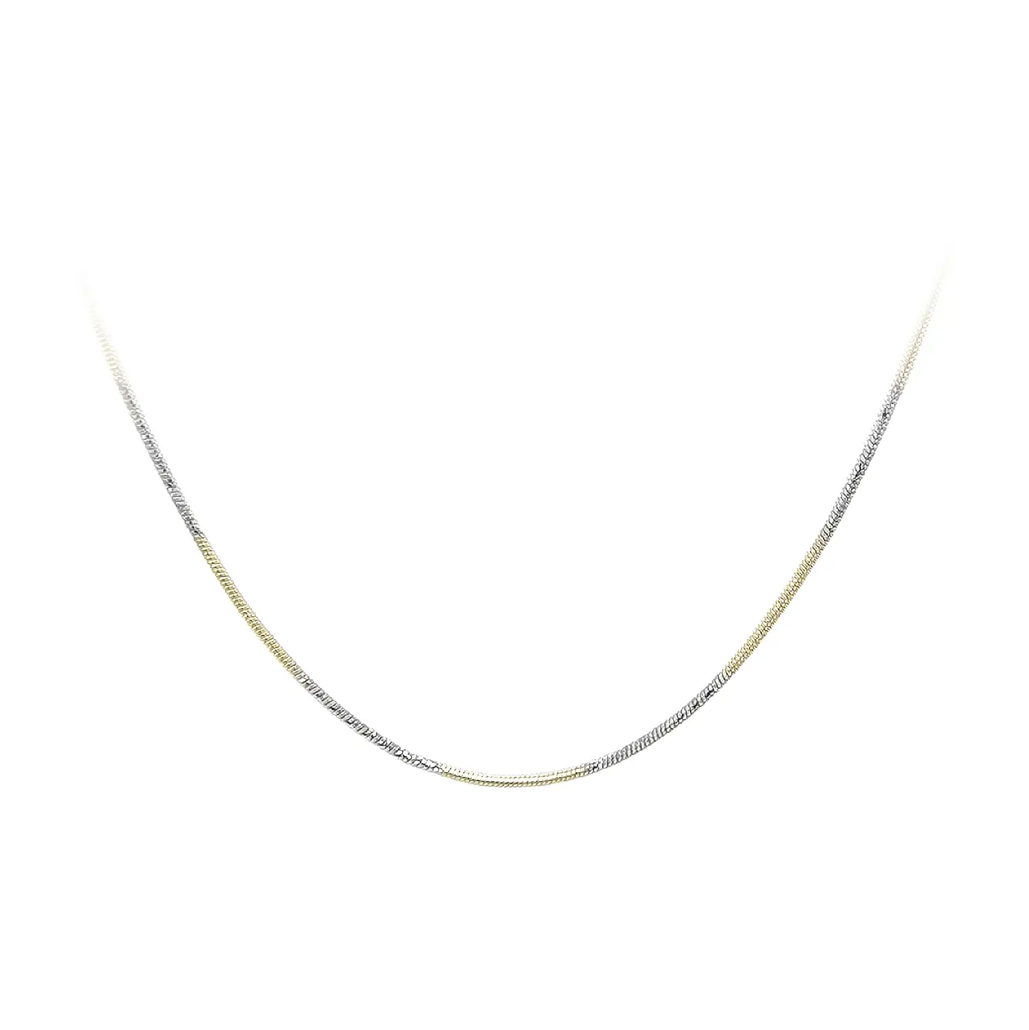 This snake chain necklace made of combined gold impresses with its smooth, continuous structure that looks elegant and modern. The precisely crafted snake weave creates a subtle shine and ensures the chain follows the natural line of the neck beautifully. Thanks to the combination of gold tones, the piece is visually attractive yet timeless and easy to pair with other jewelry.