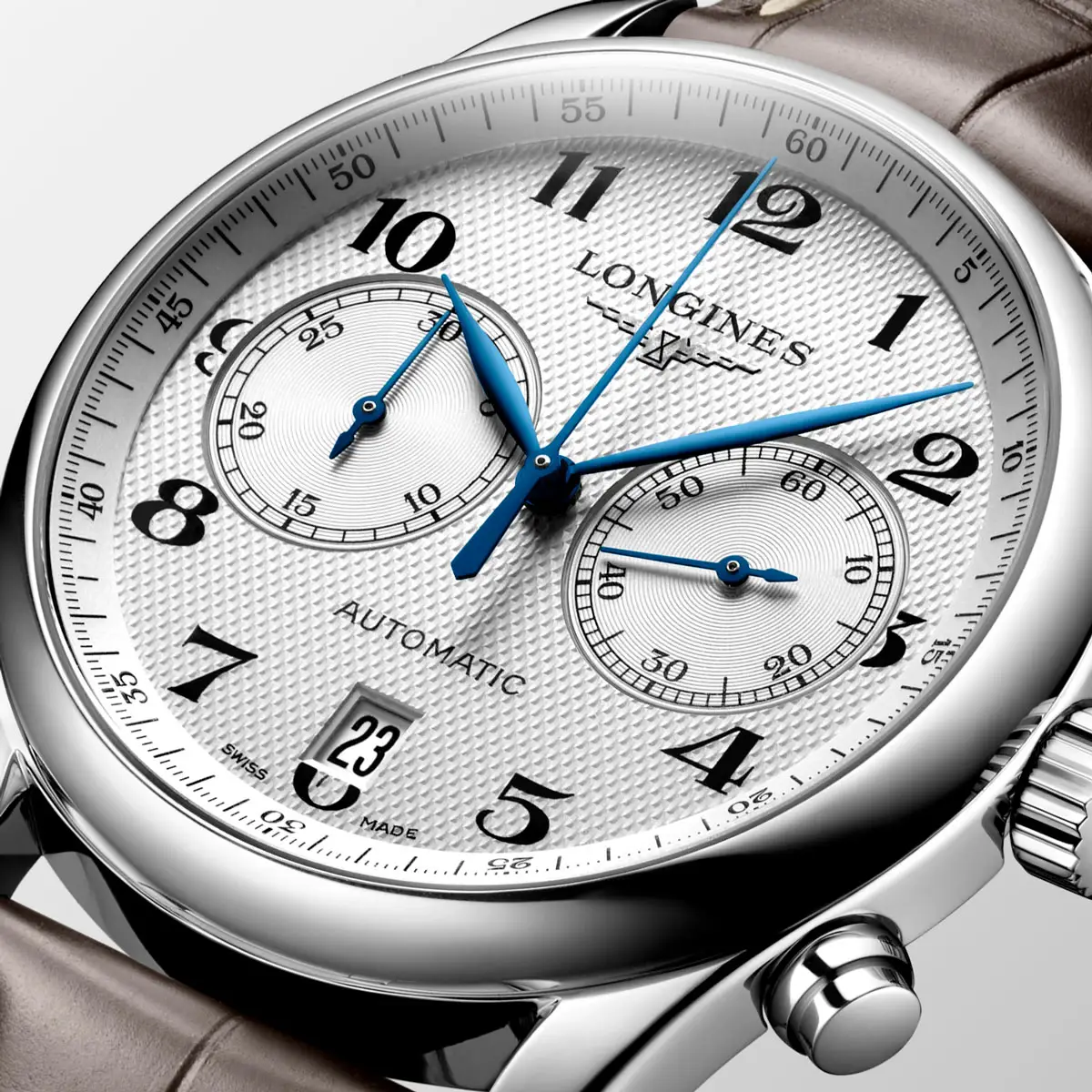 Longines Master Collection L2.629.4.78.3 is a men’s automatic chronograph watch that blends Swiss watchmaking tradition with modern elegance. The 40 mm stainless steel case is fitted with a scratch-resistant sapphire crystal and a transparent caseback revealing the movement.