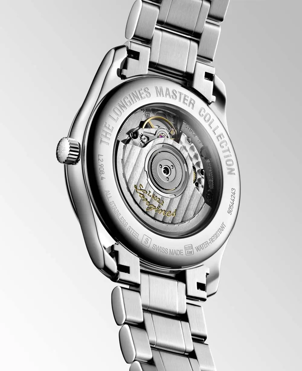 Longines Master Collection L2.908.4.78.6 is an elegant men’s automatic watch with a power reserve indicator and date, blending Swiss tradition with modern style. The 40 mm stainless steel case features an anti-reflective sapphire crystal and a transparent caseback.