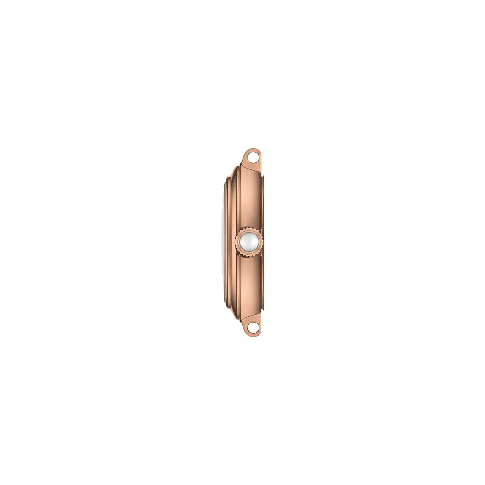 The Tissot Ballade 34 mm model brings a harmony of elegance and purity in a feminine spirit, highlighted by its 34 mm diameter and two-tone stainless-steel design with yellow-gold PVD coating. The silver dial with a delicate guilloché pattern and applied indexes adds a refined character, while its balanced proportions ensure a timeless appeal.