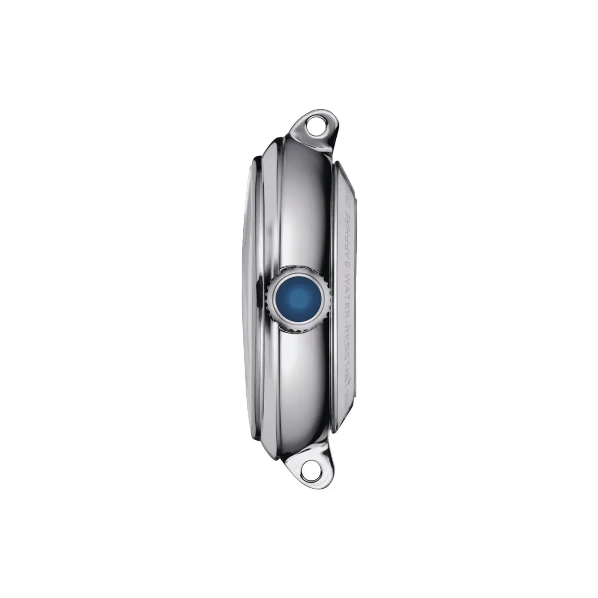 The Tissot Bellissima Automatic T126.207.11.013.00 embodies refined femininity and Swiss craftsmanship. Its 29mm stainless-steel 316L case is complemented by a silver dial with Roman numerals and a domed sapphire crystal with anti-reflective coating, creating a look of timeless sophistication.
