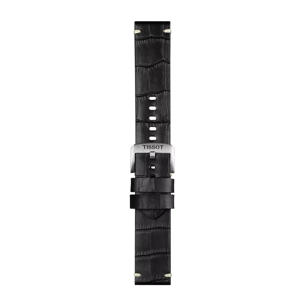 The fastening is secured by a stainless-steel buckle with a grey PVD coating, ensuring durability and elegance. With a total weight of 46 g, the black finish makes this strap a versatile choice for any occasion. As an official Tissot accessory, it guarantees perfect compatibility and premium quality.