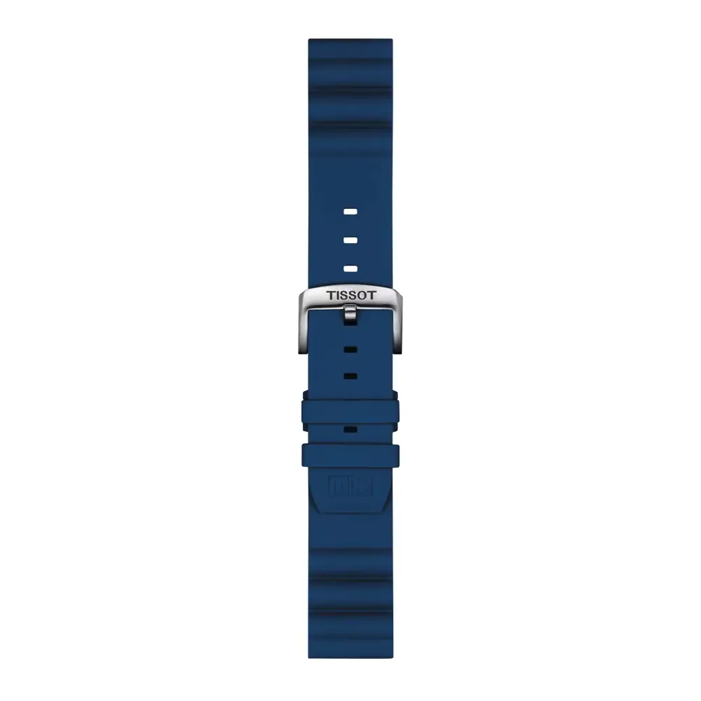 The original Tissot blue silicone strap T852.047.175 with a width of 22 mm brings a sporty and modern look with functional benefits. Made from durable synthetic silicone, it offers flexibility, comfort, and strong resistance to water and sweat, making it an ideal choice for both everyday wear and an active lifestyle.