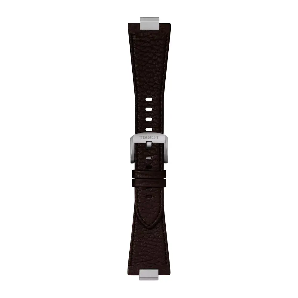 The original Tissot brown leather strap T852.049.164 is designed for PRX 40 mm watches, combining timeless elegance with practical wearability. The top side is crafted from embossed cowhide leather, adding a textured and refined look, while the underside is made of synthetic material for extra comfort.