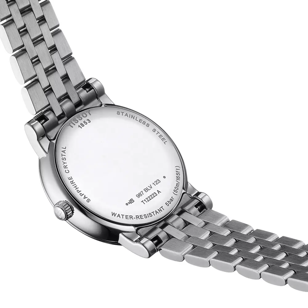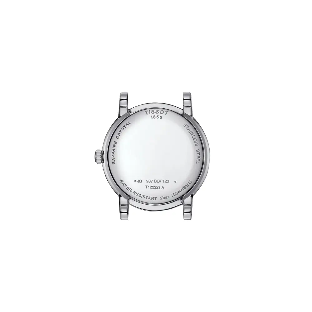 Inside, the watch is powered by the Swiss quartz ETA F05.841 movement, known for its reliability and low maintenance. It also includes a date display and a practical EOL (End-of-Life) indicator, which signals when the battery needs replacement. The T122.223.11.033.00 embodies a refined fusion of feminine elegance, quality craftsmanship and useful complications, making it an ideal choice for women who value both beauty and functionality.