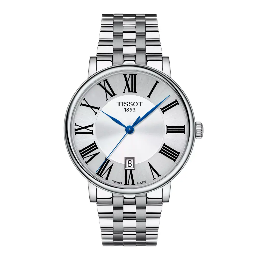 Tissot Carson Premium T122.410.11.033.00 combines classic elegance, timeless style, and Swiss precision. Its 40 mm stainless-steel case is paired with a silver dial featuring a subtle pattern, polished indexes and hands, creating a refined and sophisticated look. The scratch-resistant sapphire crystal ensures durability and perfect clarity.
