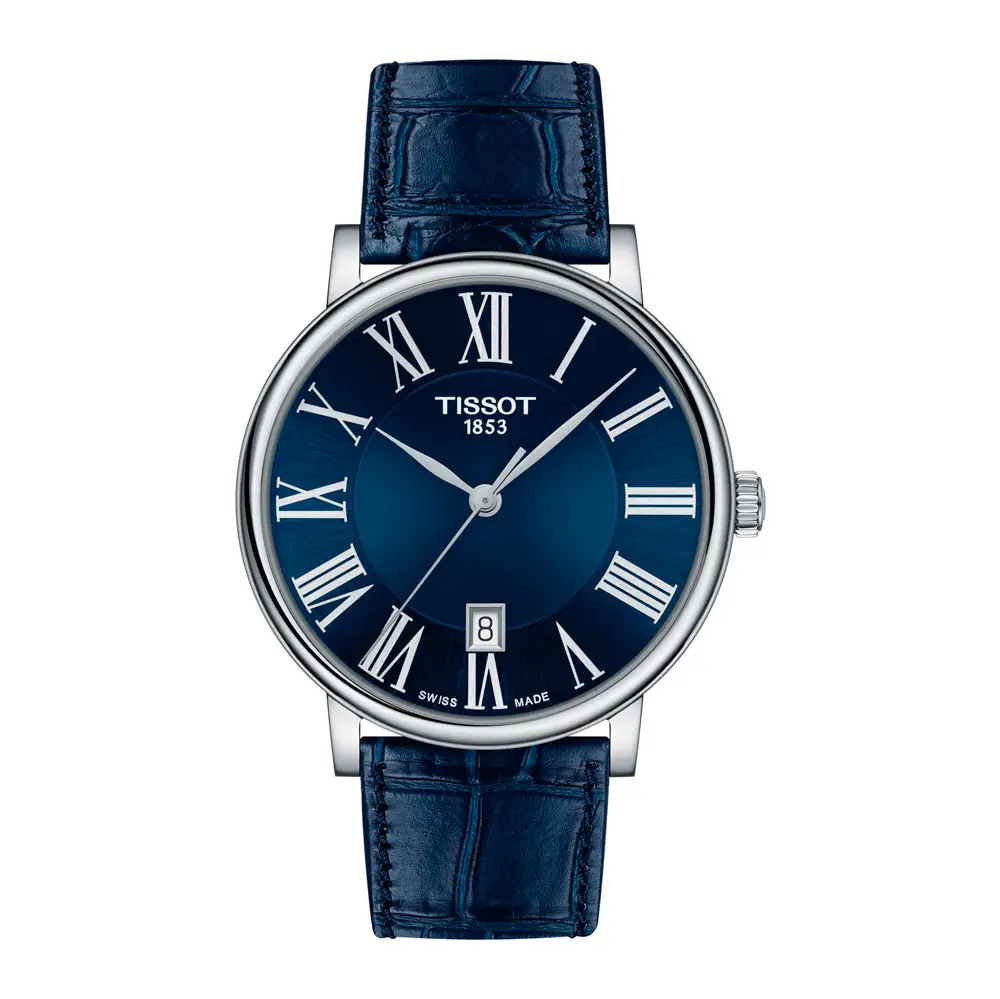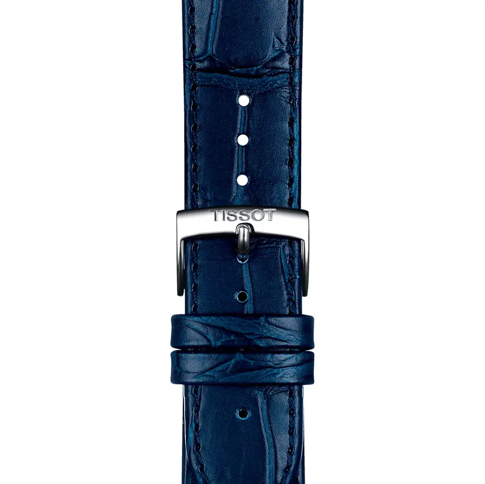 The Tissot Carson Premium T122.410.16.043.00 is an elegant and sophisticated men's watch that combines classic design with modern elements. This model features a blue dial and a 40 mm stainless steel case, giving it a sleek look. The watch has a scratch-resistant sapphire crystal and a high-quality blue leather strap that perfectly matches the dial.