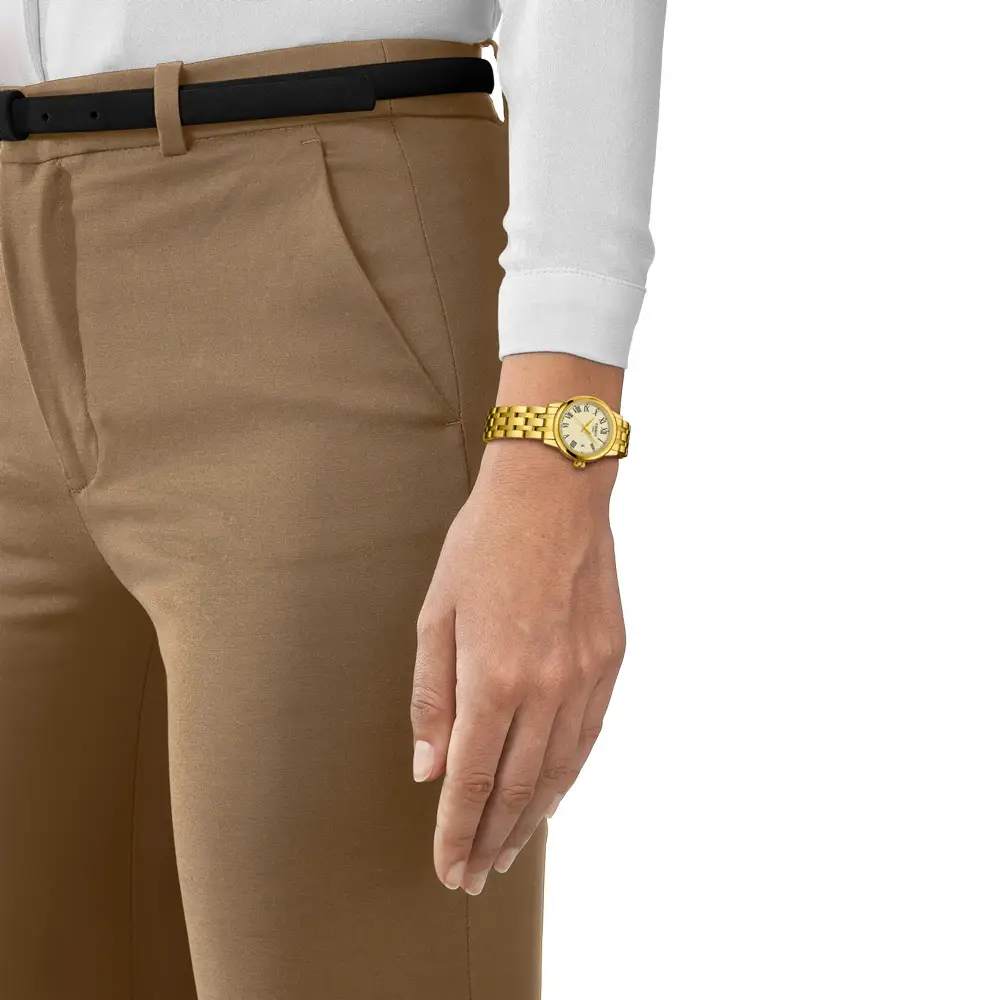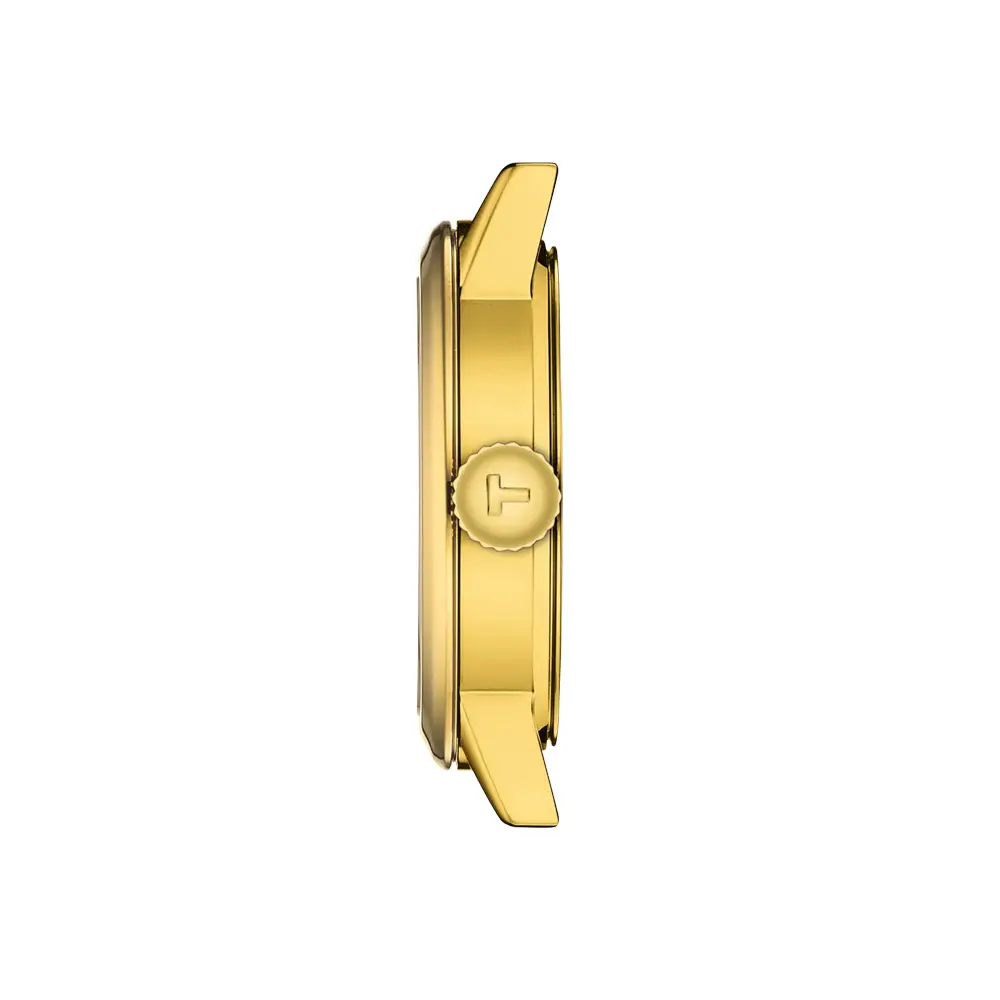 The Tissot Classic Dream 28mm offers a refined blend of timeless elegance and subtle luxury. Its 28 mm stainless-steel 316L case with a yellow-gold PVD finish gives the watch a jewellery-like appearance, while the sapphire crystal and 5-bar water resistance ensure durability for everyday wear.