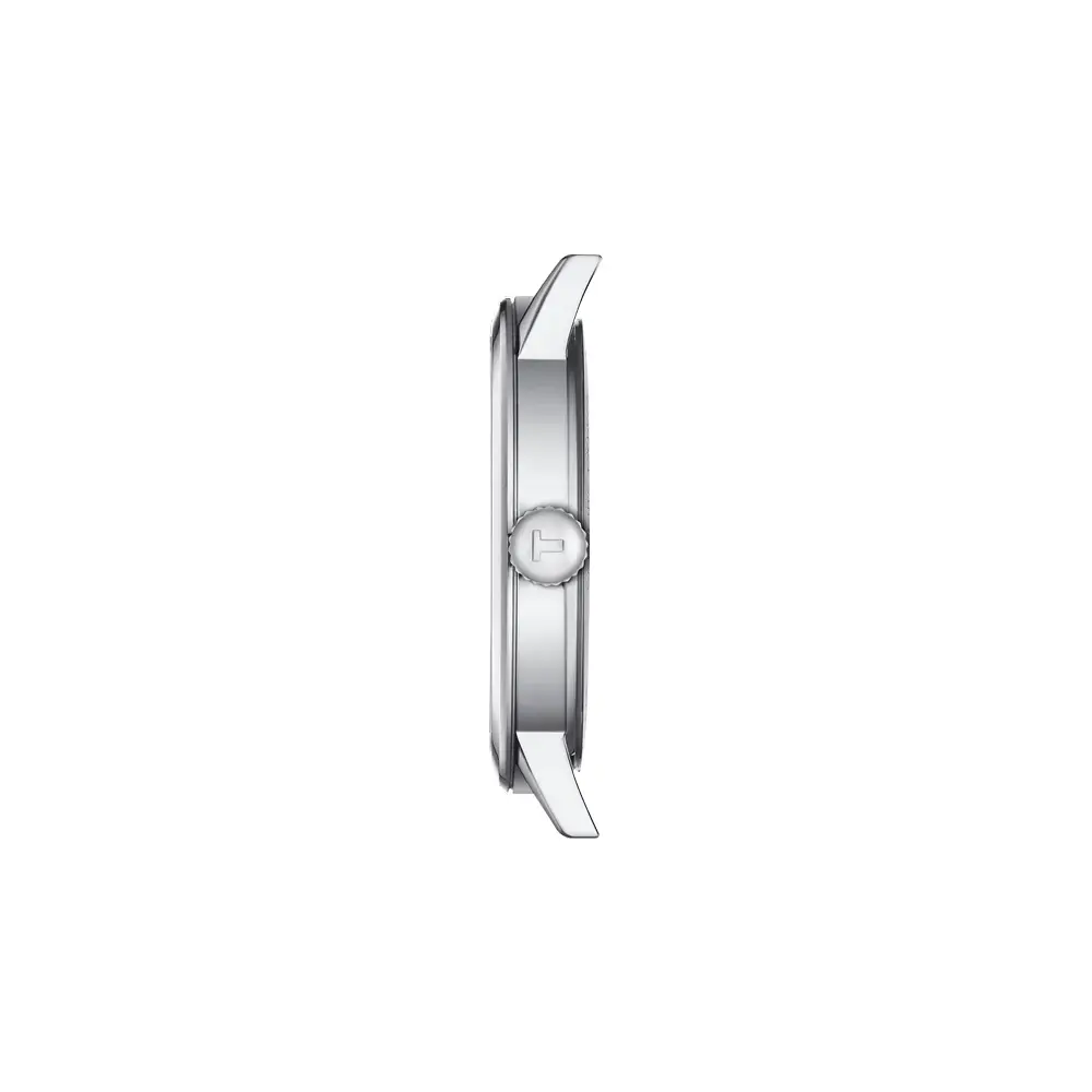 The Tissot Classic Dream Gent (ref. T129.410.11.031.00) delivers an elegant interpretation of traditional men's watchmaking designed for both everyday and formal wear. The model features a silver dial with a clean analog layout and a date display at 3 o’clock, protected by a sapphire crystal known for its superior scratch resistance. The look is completed by a stainless-steel bracelet with a butterfly clasp.