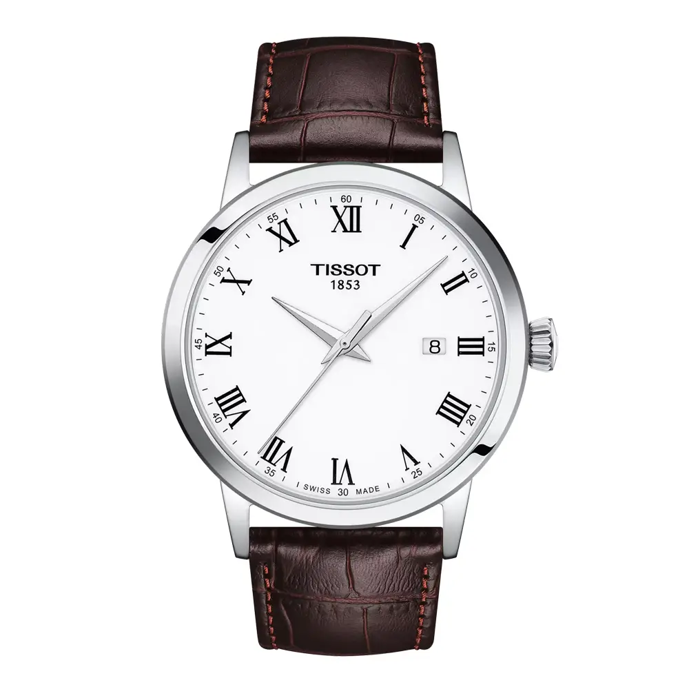 The Tissot Classic Dream embodies refined elegance built on clean lines and timeless simplicity. Its 42 mm 316L stainless-steel case paired with a soft white–silver dial featuring Roman numerals and slender hands creates a sophisticated, formal look — ideal for business, special occasions or everyday elegance. The brown leather strap with a traditional buckle completes the classic appearance and ensures comfortable wear.