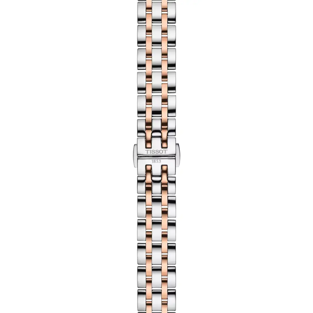 The Tissot Classic Dream Lady combines timeless elegance with precise Swiss craftsmanship. Its 28 mm stainless-steel 316L case with rose-gold PVD coating forms a refined, feminine silhouette that fits beautifully on smaller wrists. The white dial with Roman numerals and slim hands creates a clean, classic aesthetic, while the sapphire crystal ensures excellent scratch resistance and clarity.