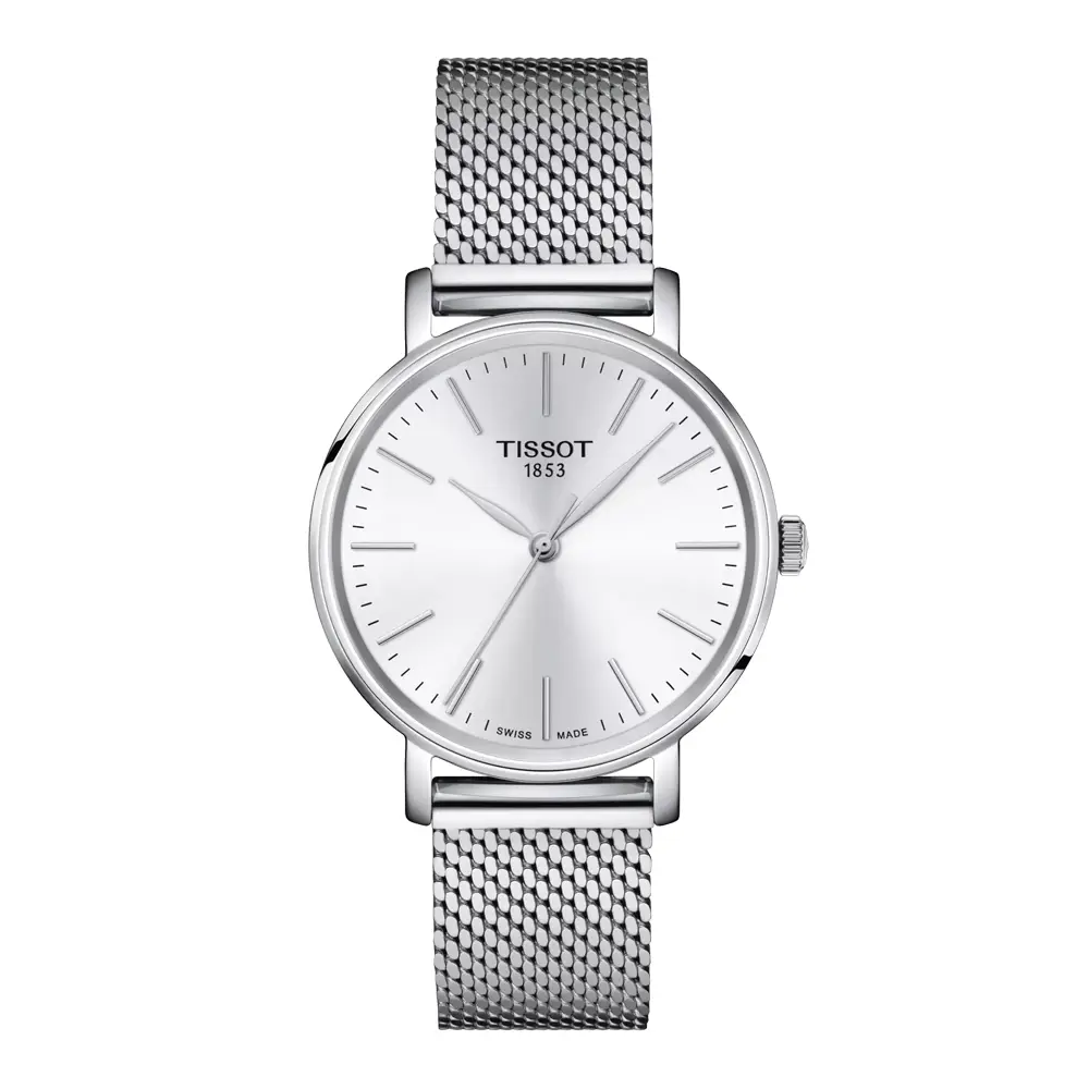 This ladies’ watch from the Everytime collection embodies the pure essence of minimalist elegance that Tissot pairs with Swiss watchmaking refinement. The 34 mm stainless-steel case is complemented by a durable sapphire crystal, ensuring excellent scratch resistance and perfect dial legibility. The silver opaline dial with its slender indexes creates a harmonious, timeless aesthetic suitable for any occasion.