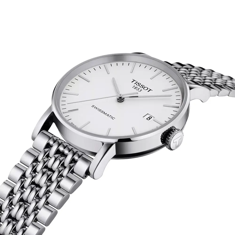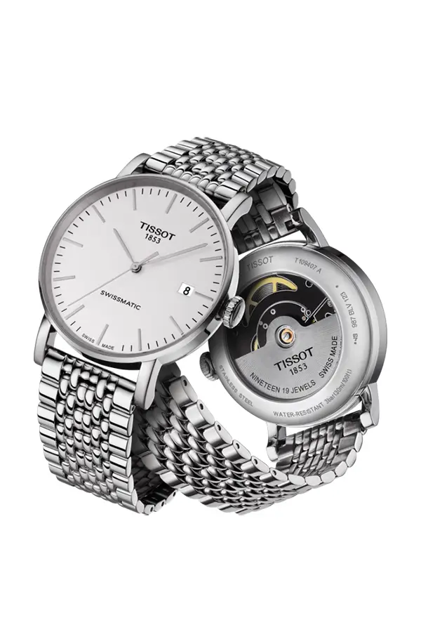 The Tissot Everytime Swissmatic T109.407.11.031.00 is an elegant and minimalist men’s watch that perfectly embodies Tissot’s philosophy of pure design. Its 40 mm round stainless steel case has a timeless appeal and is protected by a durable sapphire crystal, providing excellent scratch resistance. With a water resistance of 3 ATM (30 m), this watch is ideal for everyday wear.