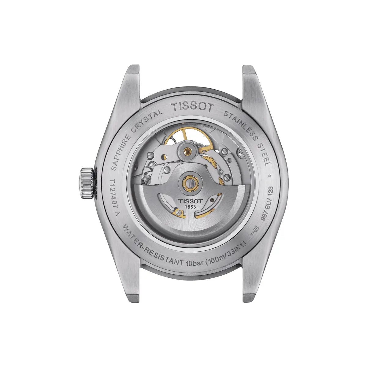 Powered by the automatic Powermatic 80 movement with an 80-hour power reserve, it ensures precision and reliability. The transparent case back showcases the fine decoration of the mechanism, while 100 metres (10 bar) of water resistance guarantee practicality for everyday wear.