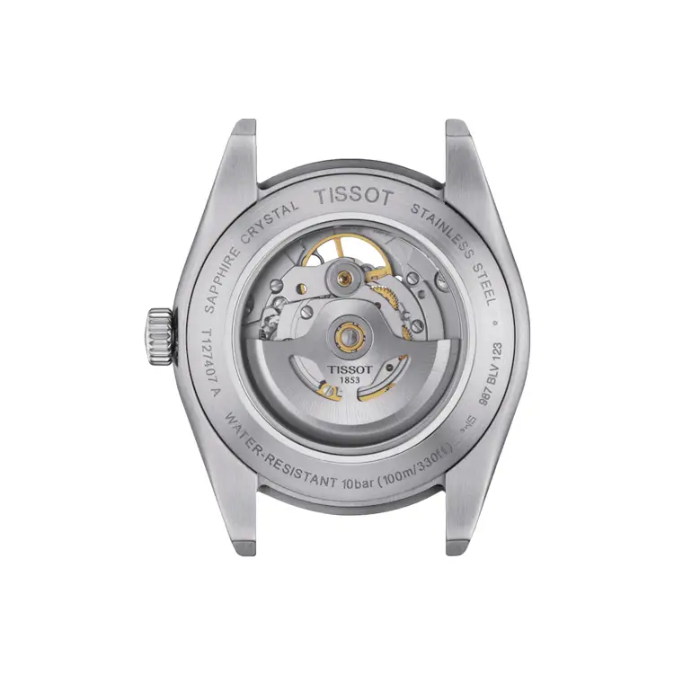 At its core lies the automatic Powermatic 80 movement, offering an impressive 80-hour power reserve and equipped with a silicon balance spring for enhanced resistance to magnetism and long-term accuracy. The transparent case back allows a clear view of the beautifully decorated movement.