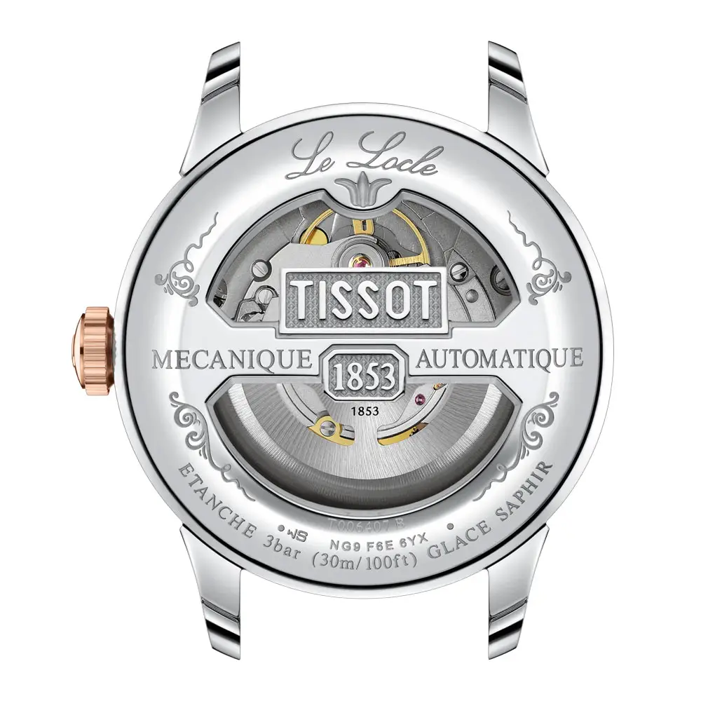 The Tissot Le Locle Powermatic 80 combines timeless design with refined modern details. Its 39.3 mm stainless-steel case with rose-gold PVD brings a distinguished presence and perfectly balanced proportions suitable for both everyday wear and formal occasions. Sapphire crystal and a transparent caseback highlight the craftsmanship behind this elegant piece.