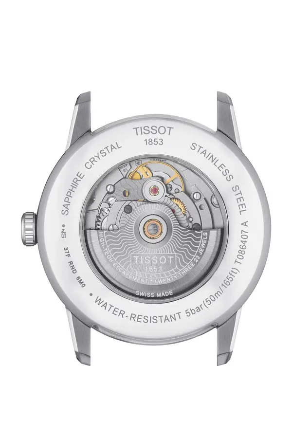 The T-Classic collection includes both automatic models with mechanical ETA movements and precision quartz variants. Among the most popular are models such as Le Locle, Gentleman, Everytime and Carson, often with sapphire crystal, transparent dial, leather straps and cleanly crafted dials.