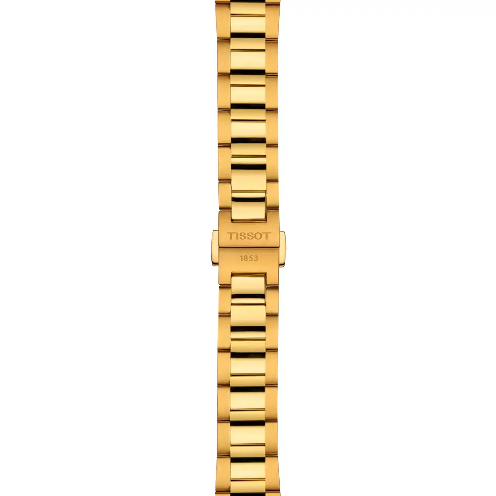 With a water resistance of 10 ATM (100 m), the watch is well-suited for swimming and water-related activities. The stylish gold-colored stainless steel bracelet with yellow gold PVD features a folding clasp, providing both secure and comfortable wear. The Tissot PR 100 is a perfect choice for women seeking a combination of elegance, practicality, and high-end Swiss quality.