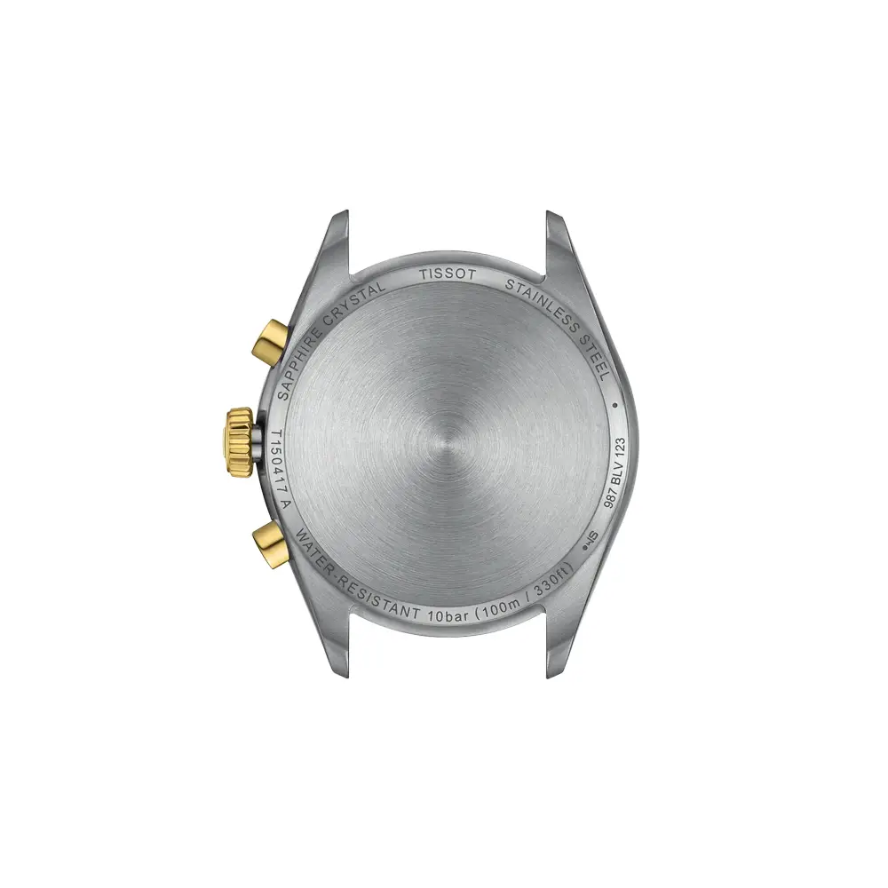 With 100 m (10 ATM) water resistance, the watch easily handles daily exposure to water and even recreational swimming. The elegant two-tone stainless-steel bracelet with a folding clasp ensures secure and comfortable wear. The Tissot PR 100 Chronograph T150.417.22.031.00 is an ideal choice for men seeking style, reliability, and functional performance in one perfectly balanced timepiece.