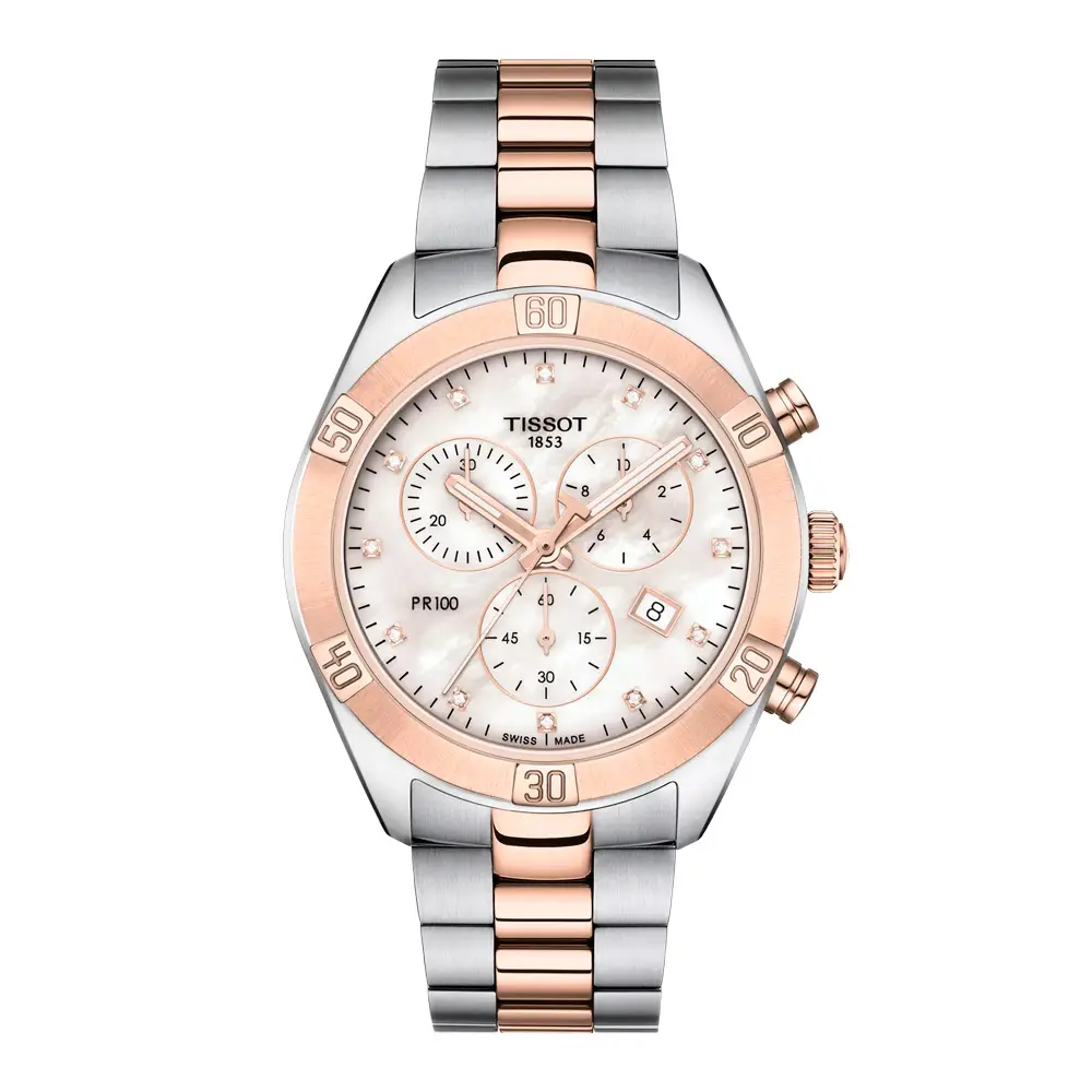 Tissot PR 100 Sport Chic Chronograph is made for women who seek performance, refinement, and elegance. A perfect expression of modern sporty luxury, equally suited for daily wear and special occasions.