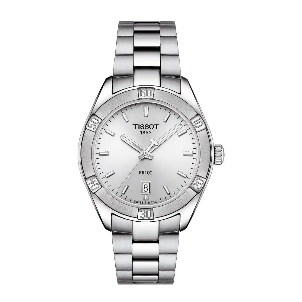 Die Tissot PR 100 Sport Chic T101.910.11.031.00 vereint sportliche Eleganz und modernen Stil in perfekter Harmonie. Ihr 36-mm-Edelstahlgehäuse (316L) wird durch ein silberfarbenes Zifferblatt mit Sonnenschliff und ein poliert-gebürstetes Edelstahlarmband ergänzt – ein Ausdruck von Vielseitigkeit und Klasse.