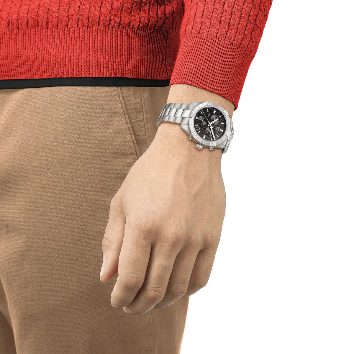 The stainless-steel bracelet with folding clasp enhances both the elegant and robust character of the watch. The Tissot PR 100 Sport Gent Chronograph T101.617.11.051.00 is perfect for men seeking a stylish, functional, and dependable timepiece, uniting Swiss quality with a modern sporty design.