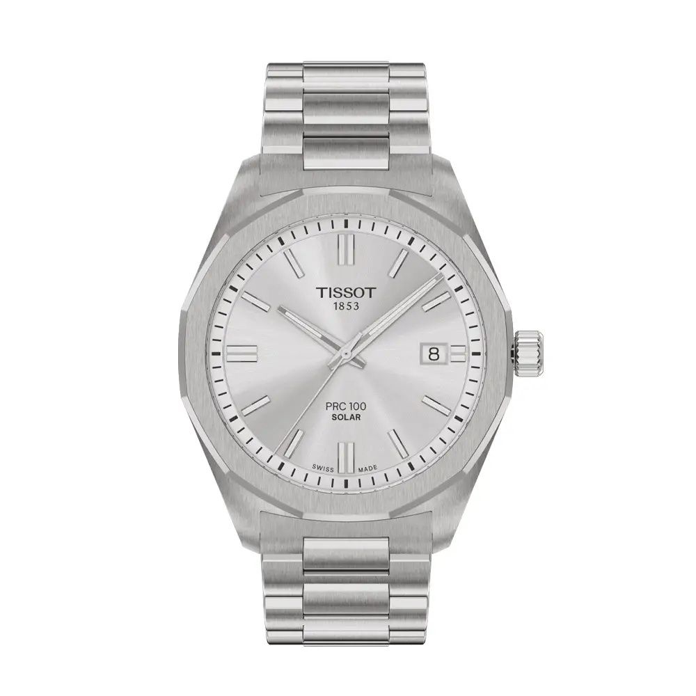 The Tissot PRC 100 Solar 39mm T151.422.11.031.00 is an elegant model that blends classic aesthetics with state-of-the-art solar technology. Its 39 mm 316L stainless steel case is complemented by a refined silver dial with luminescent hands and indexes. The dial is protected by a scratch-resistant sapphire crystal, ensuring long-lasting clarity.