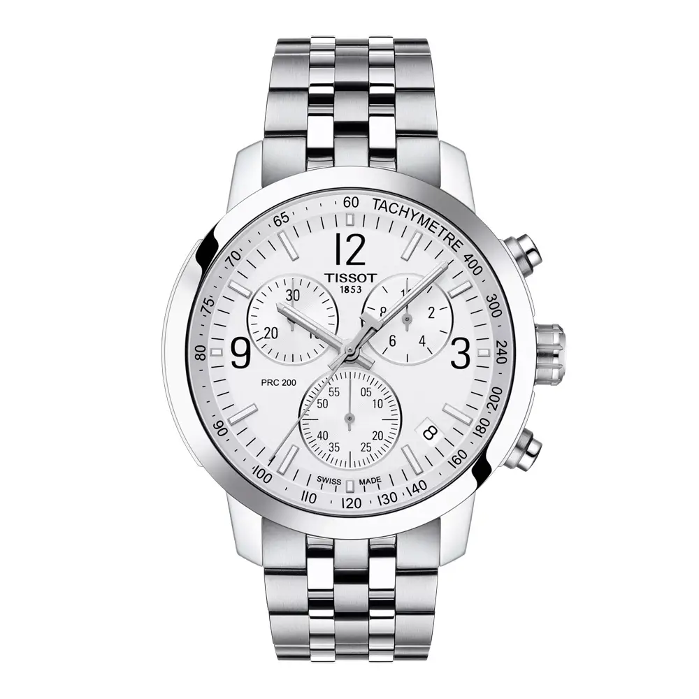 Tissot PRC 200 Chronograph T114.417.11.037.00 combines sporty functionality, precision craftsmanship, and timeless elegance. The robust 43 mm stainless-steel case is complemented by a sapphire crystal protecting the silver dial with clear indexes and contrasting hands for perfect legibility. Balanced proportions make it suitable for both formal and casual occasions.