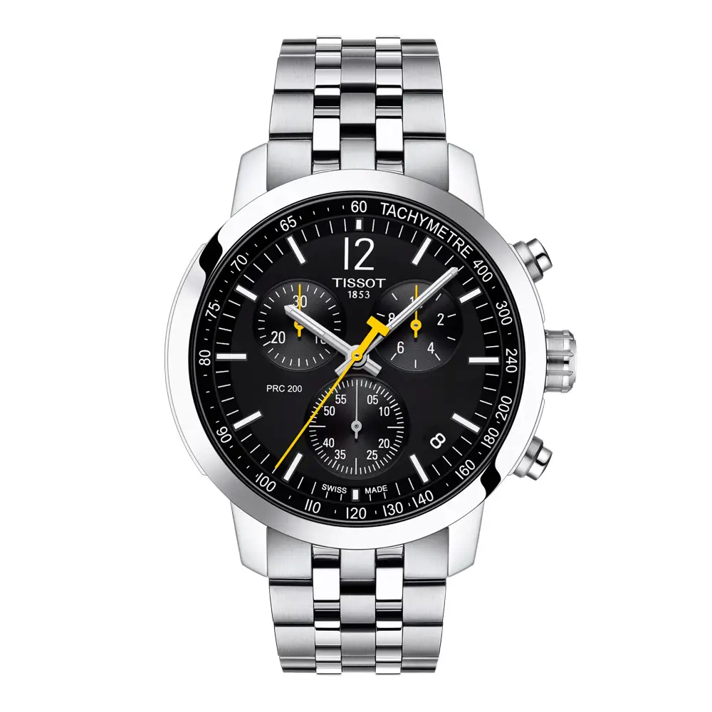 The stainless-steel bracelet with folding clasp provides comfort and security on the wrist. With water resistance up to 200 metres (20 bar), the Tissot PRC 200 Chronograph T114.417.11.057.00 is the perfect choice for men seeking a durable, functional, and stylish watch suitable for any occasion.