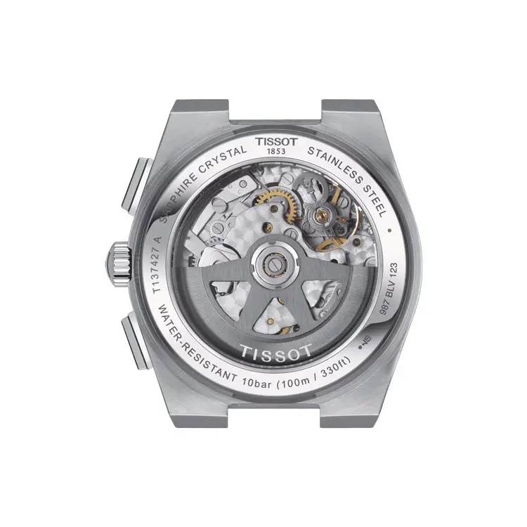At its heart beats the automatic Valjoux A05.H31 movement with a 60-hour power reserve, offering precise chronograph functions for measuring seconds, minutes, and hours. The transparent case back reveals the beautifully decorated mechanism, highlighting Tissot’s dedication to craftsmanship and technical excellence. With 100-metre water resistance (10 bar), this timepiece is built for both everyday wear and active use.