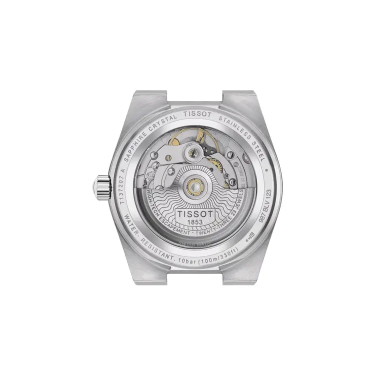 Inside beats the automatic Powermatic 80 movement with an 80-hour power reserve, visible through the transparent sapphire case back that reveals its refined mechanics. With water resistance up to 100 meters (10 ATM) and a brushed and polished stainless steel bracelet with a butterfly clasp and push-buttons, the Tissot PRX Powermatic 80 35mm is the perfect blend of vintage aesthetics, modern performance, and authentic Swiss craftsmanship.