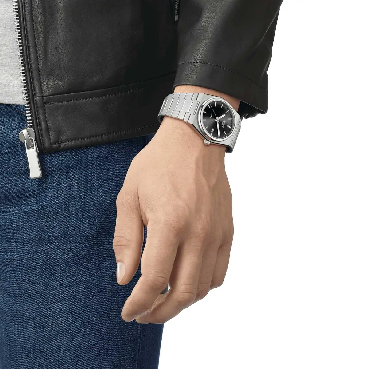 Tissot PRX T137.410.11.051.00 blends 1970s retro elegance with modern technology and Swiss precision. Its 40 mm stainless-steel case is paired with an integrated steel bracelet, whose fine links ensure a perfect fit on the wrist. The butterfly clasp provides secure and comfortable wear, enhancing the watch’s sleek, elegant look.