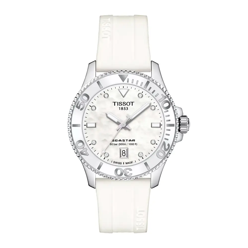 The Tissot Seastar 1000 36mm perfectly balances sporty character and luxurious elegance, blending mother-of-pearl, diamonds, and steel in a timeless design made for life above and below the surface.