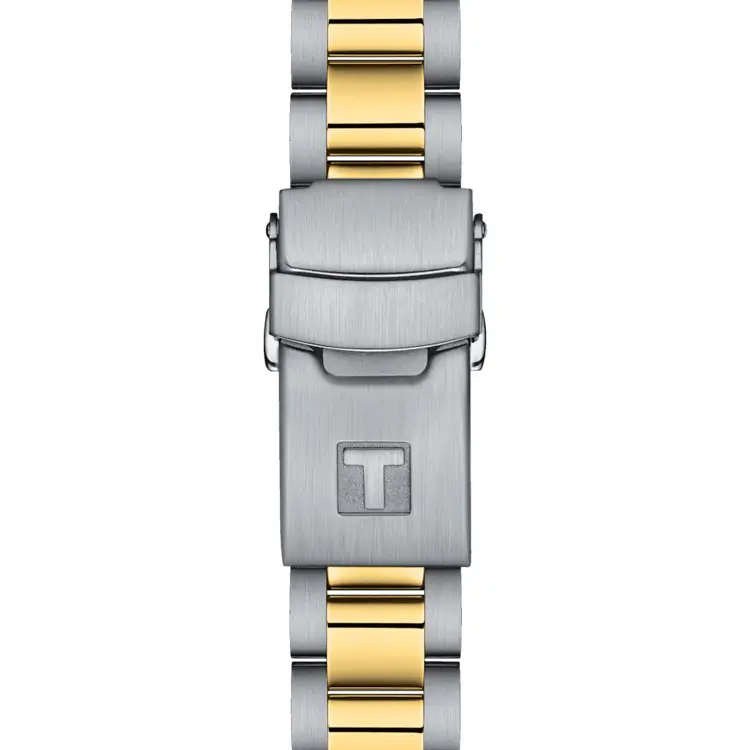 The Tissot Seastar 1000 36mm T120.210.22.051.00 blends diving performance, Swiss precision, and refined elegance in a compact size. Its 36mm stainless-steel 316L case with two-tone yellow gold PVD coating is paired with a black dial featuring luminous hands and markers, ensuring excellent legibility underwater.
