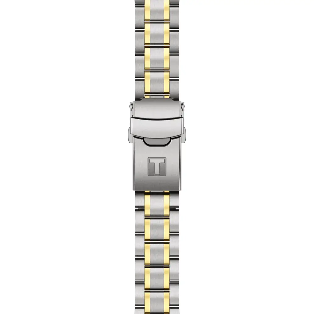 The Tissot Seastar 1000 Chronograph T120.217.22.061.00 blends professional diving performance, durability and Swiss precision in a compact 38 mm steel case. The two-tone PVD bracelet and refined grey dial give the watch a sporty yet versatile character suitable for everyday wear.