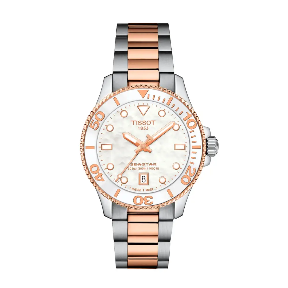 The Tissot Seastar 1000 Quartz 36mm T120.210.22.111.00 combines sporty performance with elegant design, an ideal combination for lovers of water activities and everyday wear.