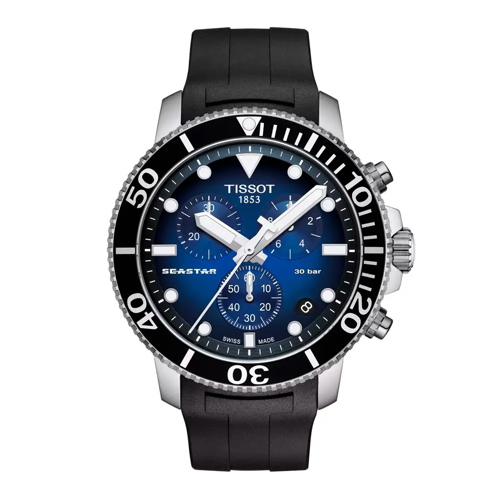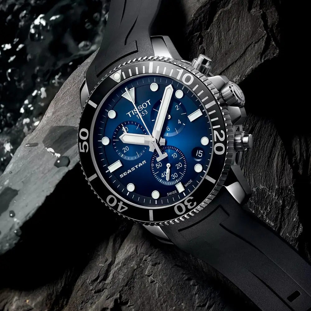 Completed with a blue rubber strap for comfort and durability, the Tissot Seastar 1000 Quartz T120.417.17.041.00 is the perfect choice for men seeking a powerful, stylish, and versatile timepiece that blends Swiss craftsmanship, technical precision, and sporty elegance.